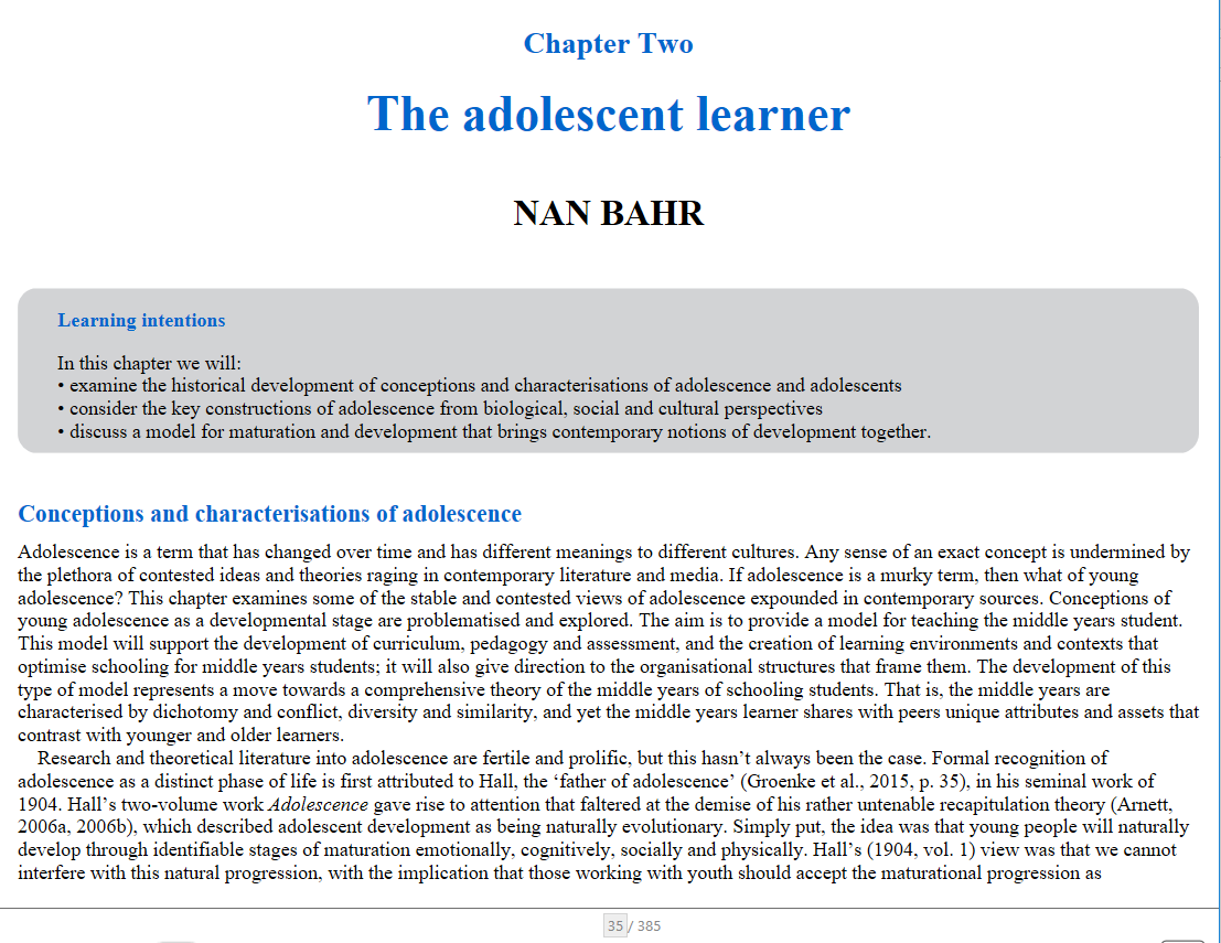 “The middle years of schooling are increasingly recognised as a crucial stage in students’ lives, one that has significant consequences for ongoing educational success. Teaching Middle Years offers a systematic overview of the philosophy, principles and issues in middle schooling. It includes contributions from academics and school-based practitioners on intellectual and emotional development in early adolescence, pedagogy, curriculum and assessment of middle years students. This edition is revised to reflect the latest research findings. It includes new chapters on students with diverse needs, school partnerships with families and community, and effective team teaching, and a chapter that brings middle schooling concepts to life by providing real examples of reform in action. Written for teachers, student teachers, education leaders and policy makers, this is a resource for anyone involved in educating young adolescents. “